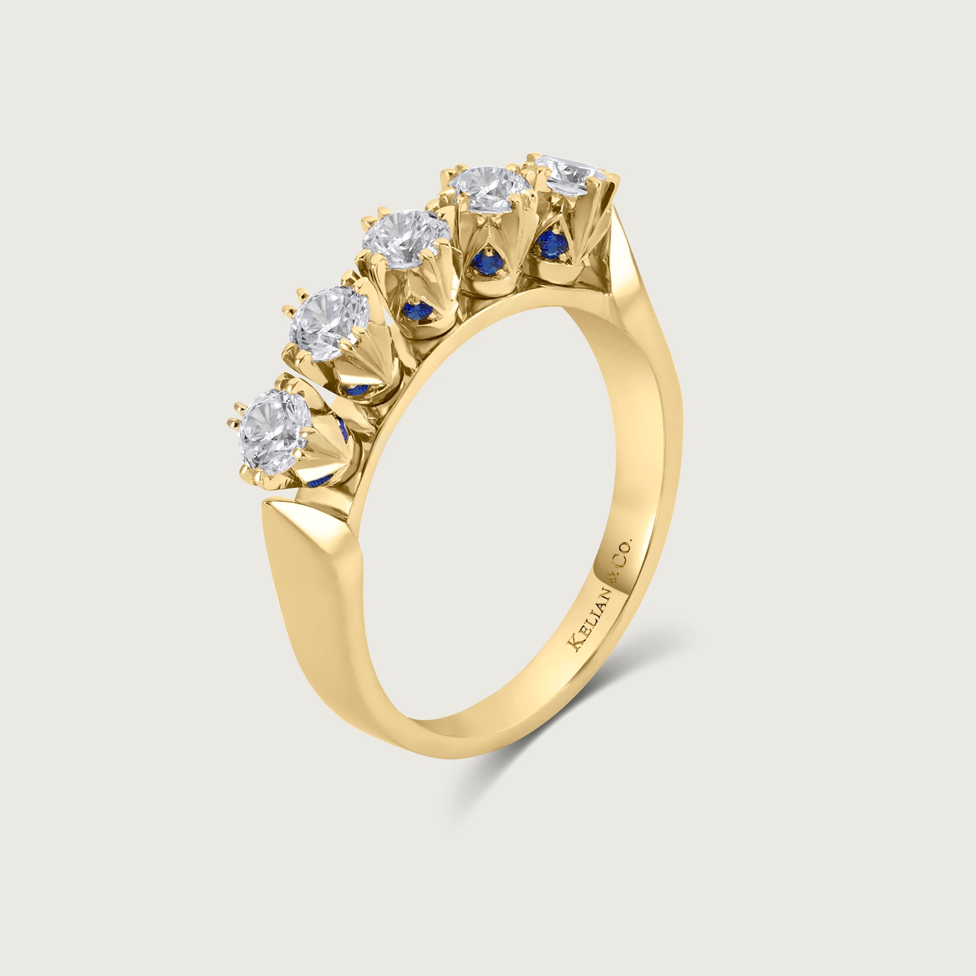 Expertly crafted in 18K gold (750/1000), the ring features 20 sapphires set alongside 5 round brilliant-cut diamonds, together totaling approx. 1.3 carats. The refined craftsmanship enhances brilliance and texture, symbolizing the harmony of love and connection.